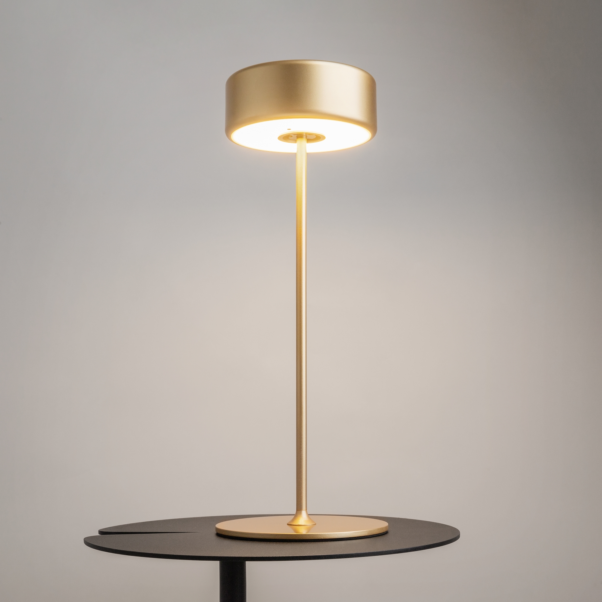 Портативный настольный светильник. Результат творческой коллаборации искусственного интелекта и предметного дизайнера. Два варанта корпуса светильника: с металлической тонкой ножкой на плоском круглом основании; со стеклянным основанием с интегрированным в него вазой. Плафон снимается с основания для удобного ухода за стеклянными элементами и подзарядки аккумулятора, расположенного в плафоне. Два варианта цвета стеклянных моделей - прозрачный и серый. Плафоны с рассеивателем из акрила в 3х цветах: черный, золотой, белый. Удобный сенсорный выключатель вверху плафона. Micro USB разъем для подзарядки скрыт в нижней части плафона. LED-источник света. Регулируемая цветовая температура от 2200К до 4000К.
