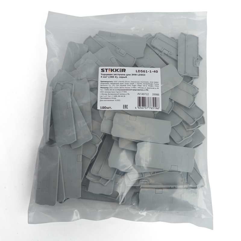 Характеристики LD561-1-40 Торцевая заглушка для ЗНИ LD553 4 мм² (JXB ST 4), серый STEKKER