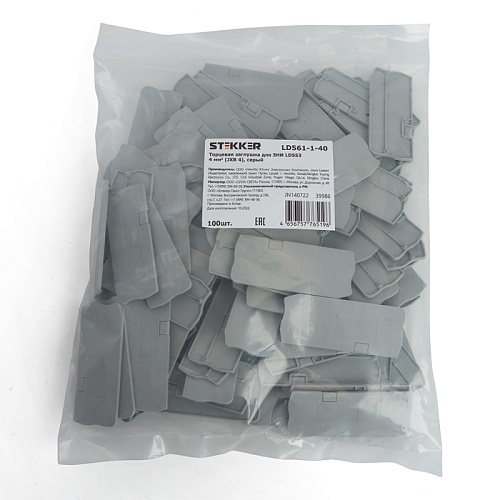 LD561-1-40 Торцевая заглушка для ЗНИ LD553 4 мм² (JXB ST 4), серый STEKKER 39986