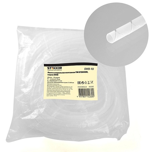 Лента спиральная монтажная STEKKER, диаметр пучка 7,5-60 мм, 10 м/упак, белый, SWB-10