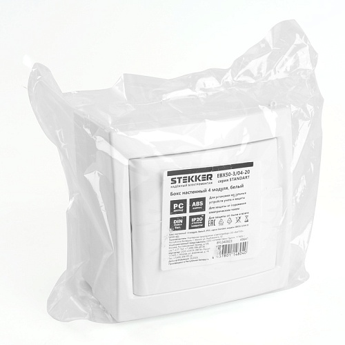Бокс настенный STEKKER EBX50-3/04-20 4 модуля, белый, пластик, серия Standart