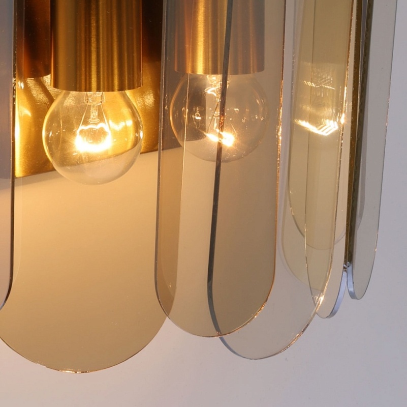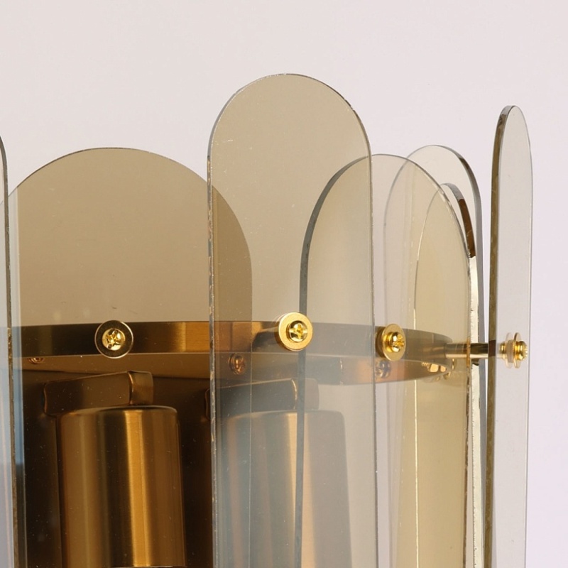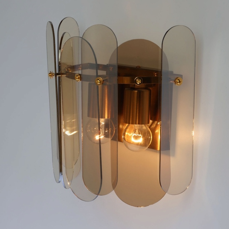 Металлическое основание настенного бра гальванизировано в цвет бронзы. Вертикальное бра декорировано стеклом овальной формы, гальванизированным в цвет топаз.
