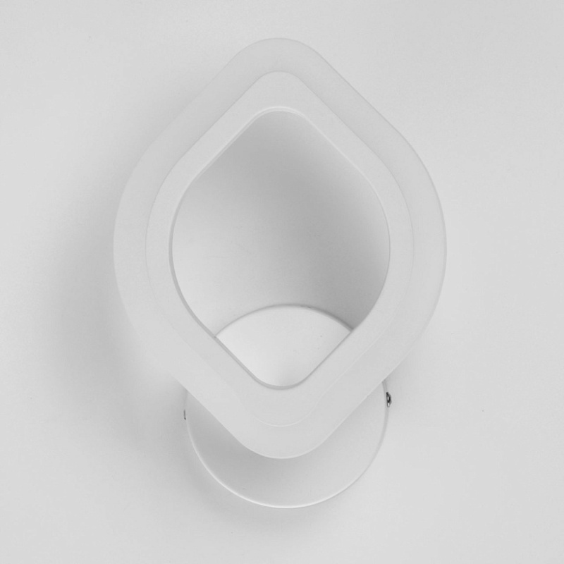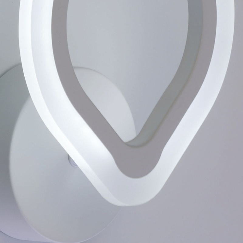 Металлическое основание настенного бра окрашено в белый цвет. Корпус плафона выполнен из сплава алюминия с цинком и окрашен в цвет основания. Светодиодные источники света закрыты белым матовым акрилом.