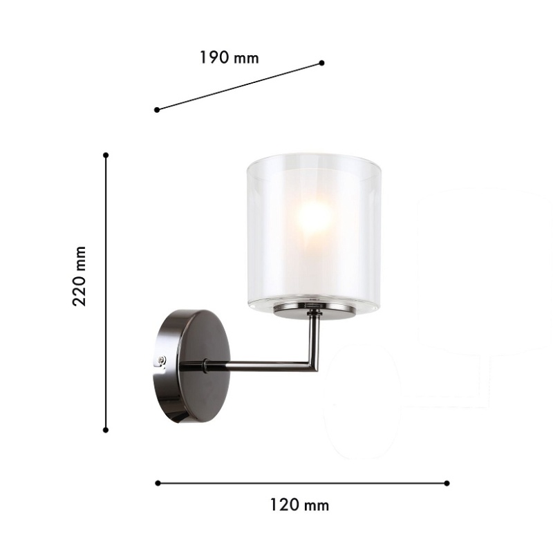 Металлический каркас жемчужно-черного цвета, двуслойные плафоны из прозрачного и белого стекла.