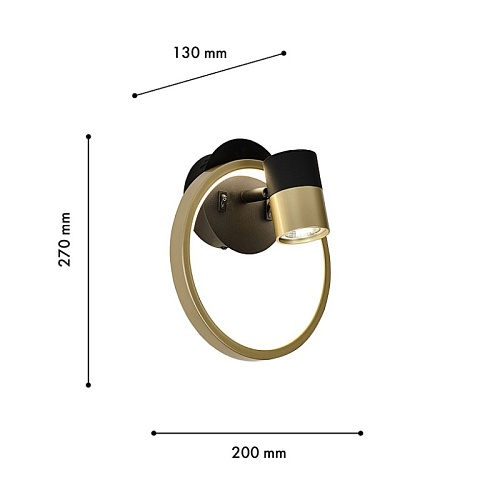 Металлический каркас черного матового цвета и цвета матовое золото, рассеиватель из акрила, два источника света - лампа GU10LED 10W и светодиодная лента LED, Поворотный спот на 360 с выключателем.