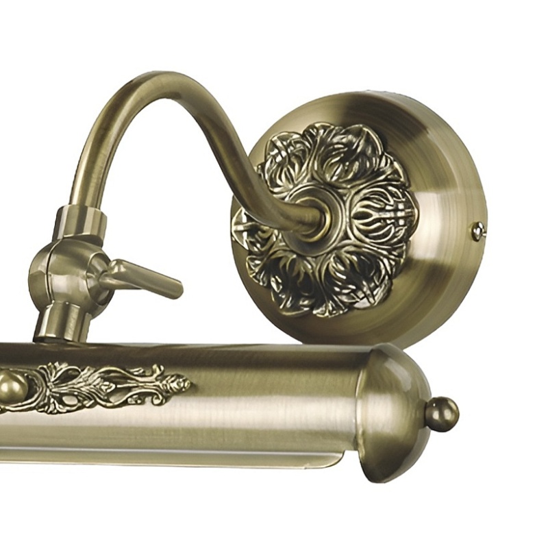 Металлический каркас в цвете античная бронза с декоративным узором на чашке и плафоне.