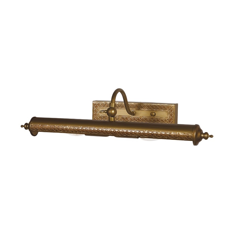 Металлический каркас коричневого цвета с декоративным узором на чашке и плафоне.