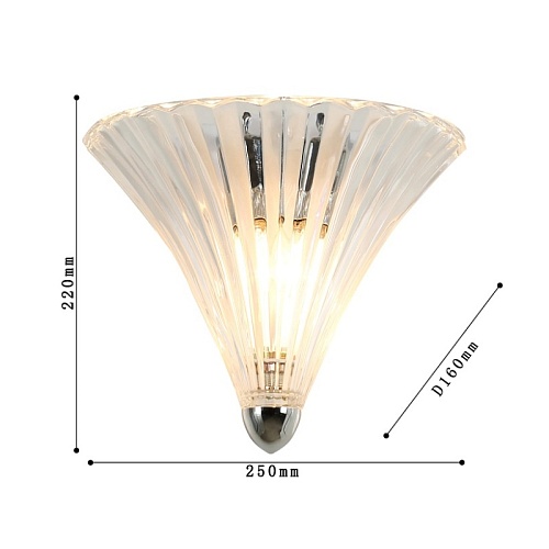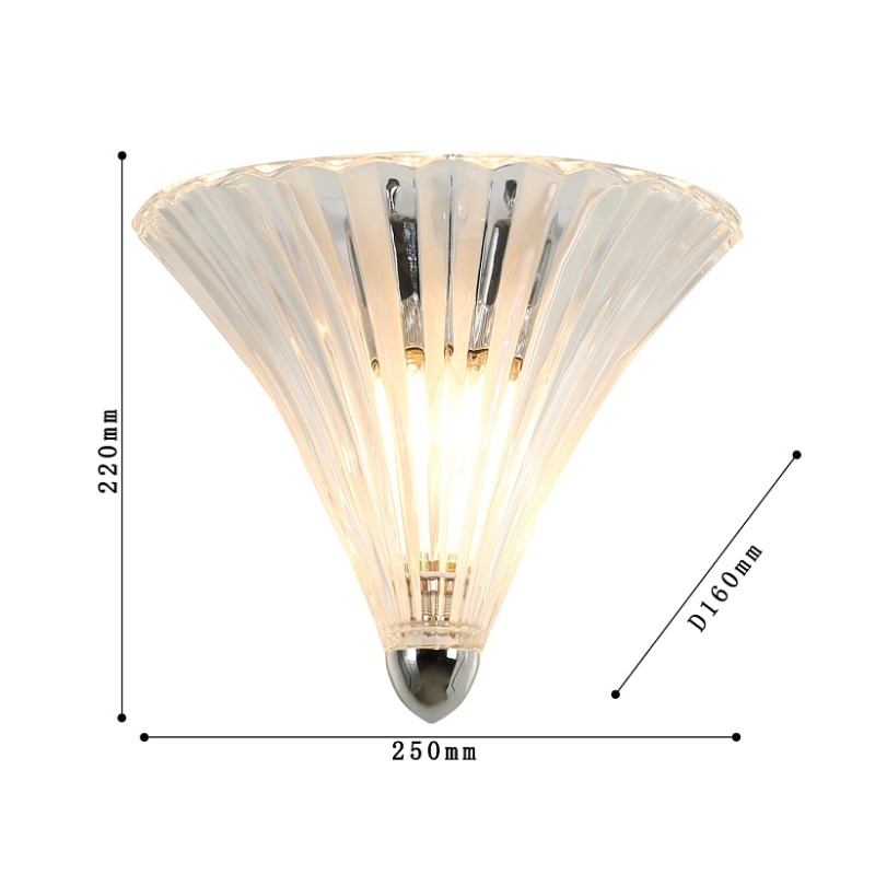 Стекло прозрачного цвета, хромированный элемент, сменная лампа, цоколь Е14.