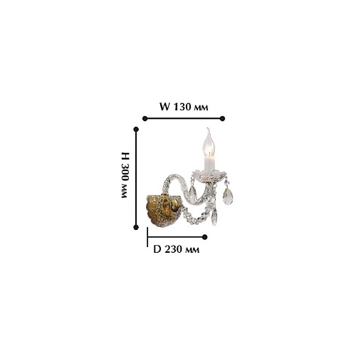 Металлический каркас золотого цвета, хрусталь высшего качества и стеклянные рожки и блюдца прозрачного цвета.