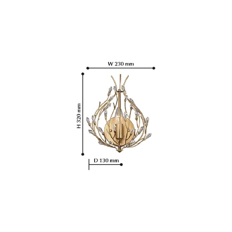 Каркас из металла золотисто-коричневого цвета, прозрачный хрусталь высшего качества.