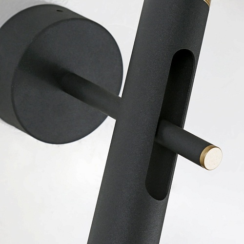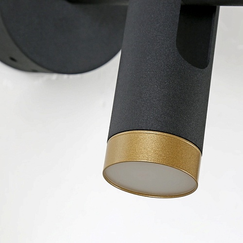 Металлический каркас черного матового цвета, элементы окрашены в золотой цвет, плафон поворотный, модули LED с двух сторон плафона, акриловый рассеиватель.