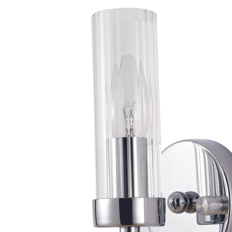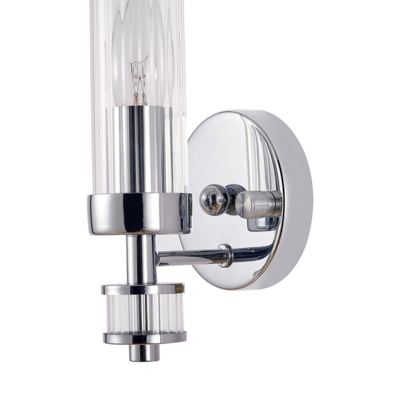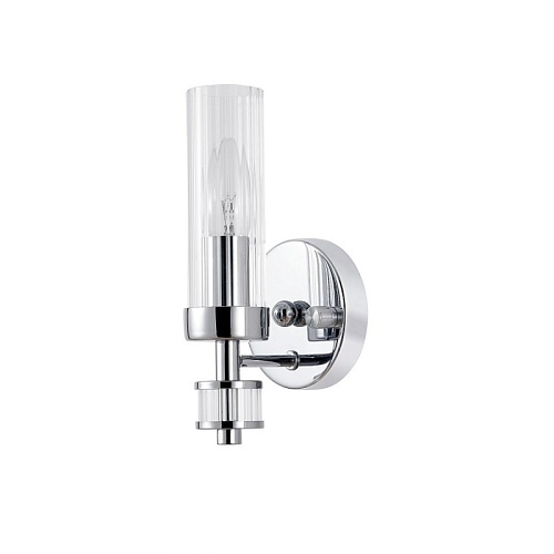 Хромированный металлический каркас, плафон из прозрачного рифленого стекла.