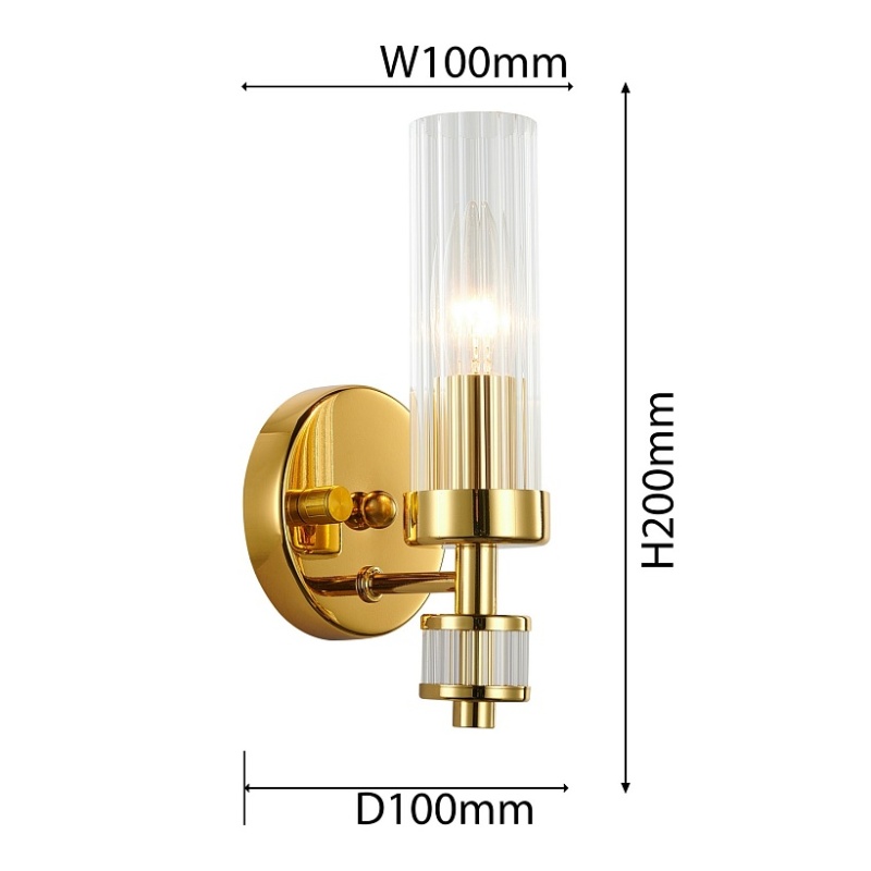 Металлический каркас золотого цвета, плафон из прозрачного рифленого стекла.
