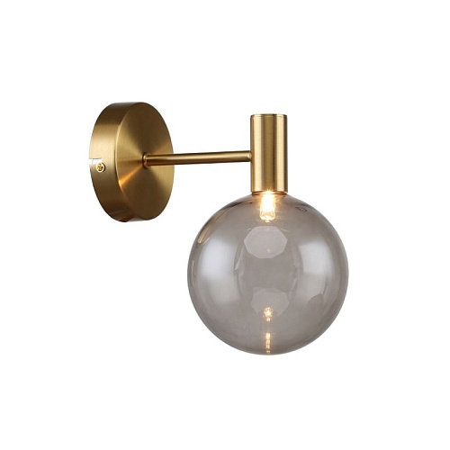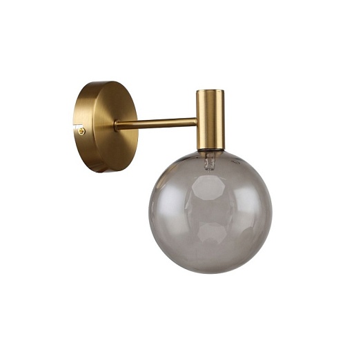 Металлический каркас цвета латунь, круглый плафон из стекла коньячного оттенка.