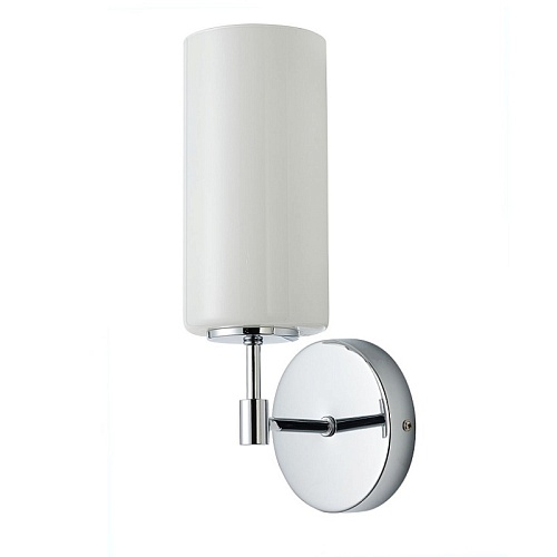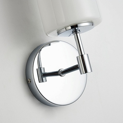 Металлический хромированный каркас, плафон из белого матового стекла, сменная лампа, цоколь Е14.