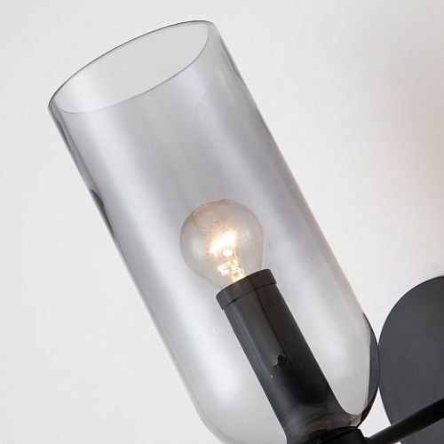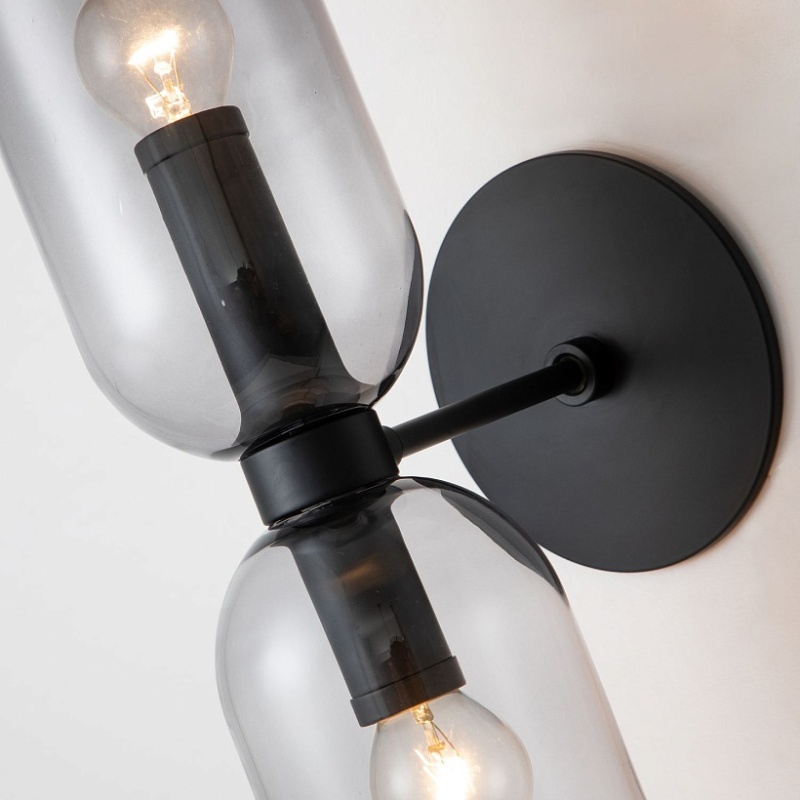 Металлический каркас черного цвета, плафоны из стекла дымчато-серого цвета.