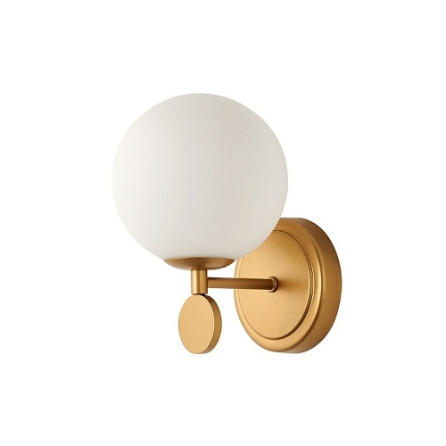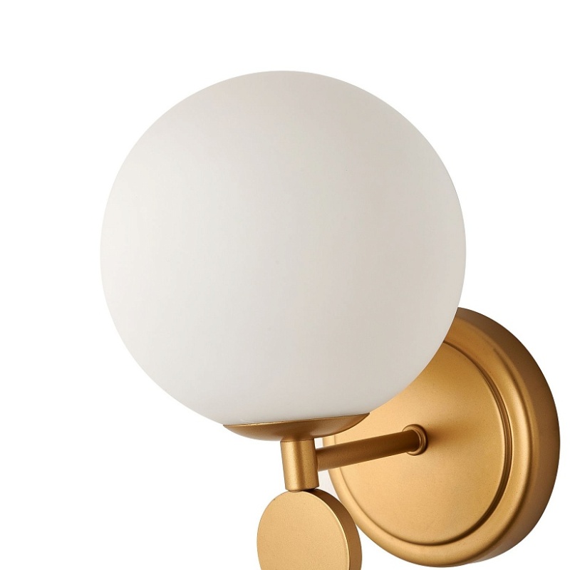 Каркас из металла золотого цвета, плафон из стекла цвета опала, сменные лампы, цоколь Е14.