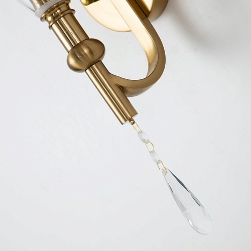Каркас бронзового цвета, плафон из прозрачного стекла, декоративный элемент из прозрачного хрусталя.