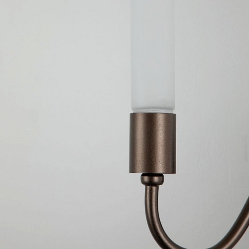 Металлический каркас темно-коричневого цвета, плафоны из полупрозрачного стекла.