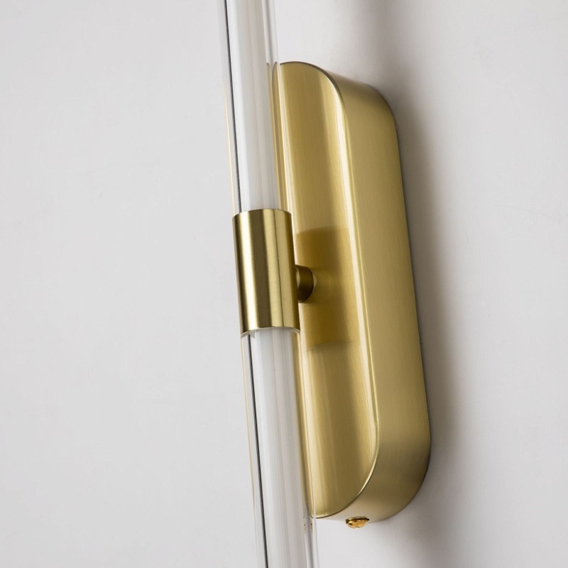 Металлический каркас золотого цвета, рассеиватель из белого акрила, LED-модуль.