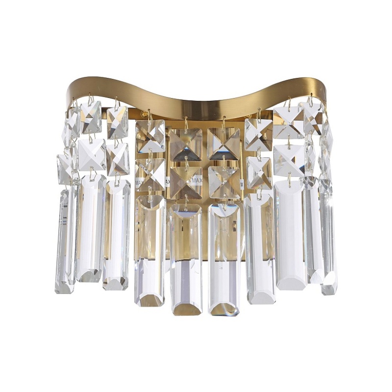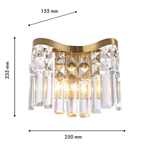 Каркас в цвете гальваническое золото, декорирована прозрачным хрусталем, сменная лампа.