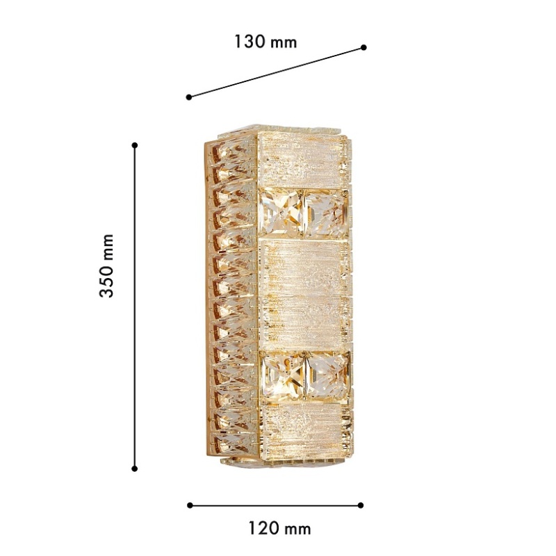 Каркас в цвете матовое золото, декор из матового рельефного стекла цвета шампанского по Муранской технологии, вставки из хрусталя в коньячном цвете, регулируемая высота.