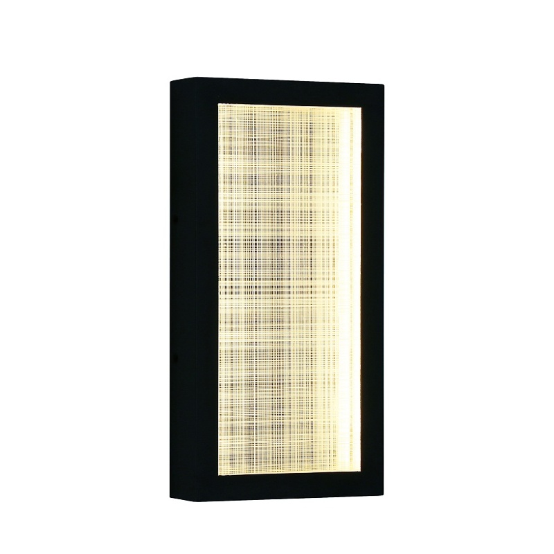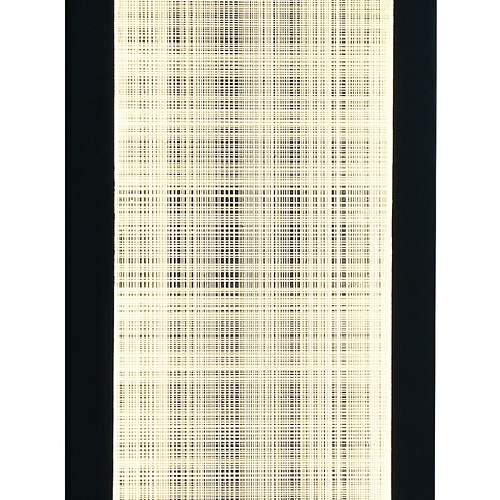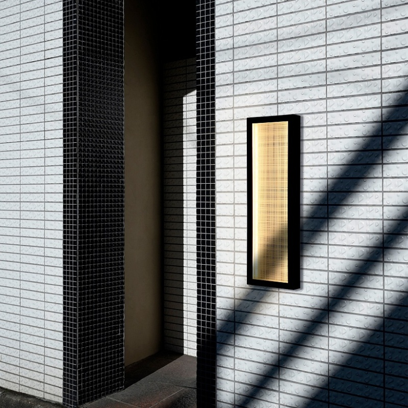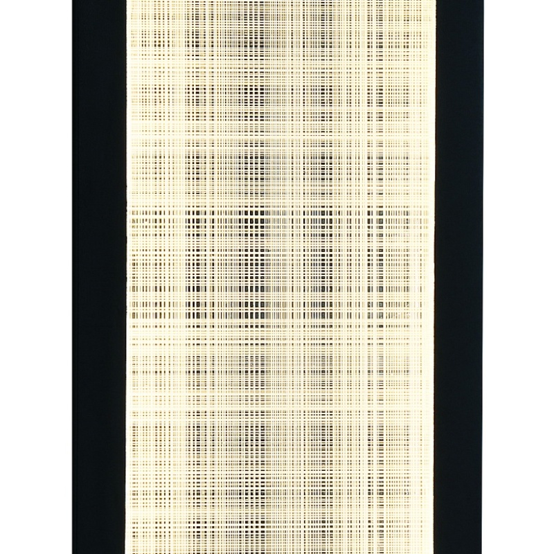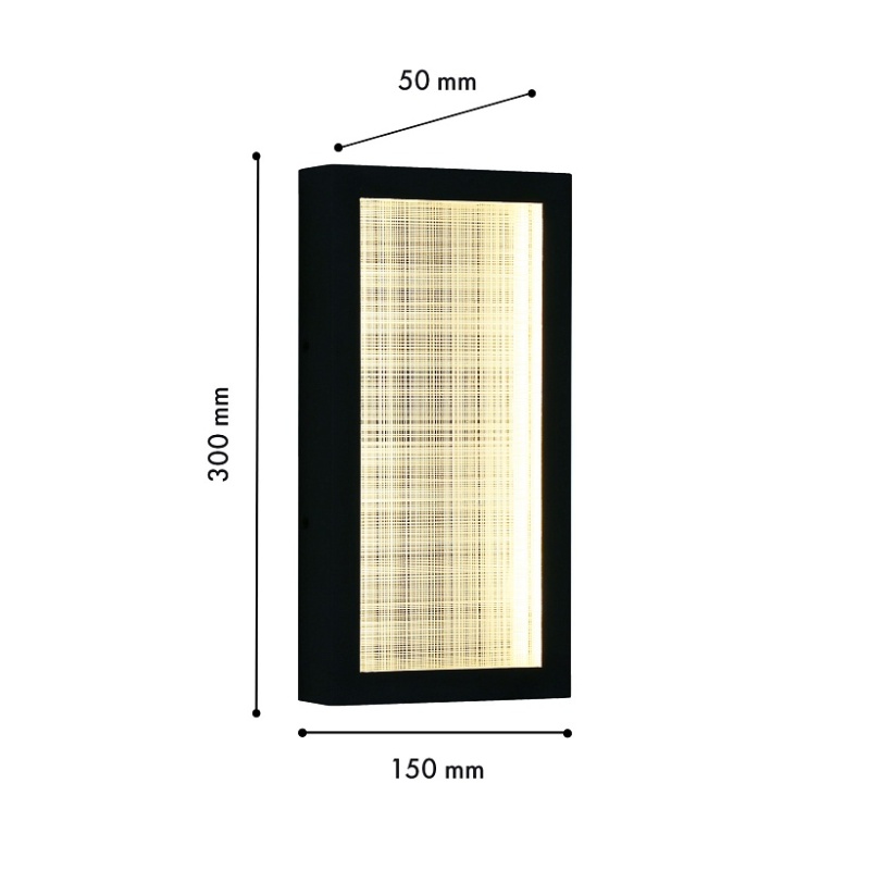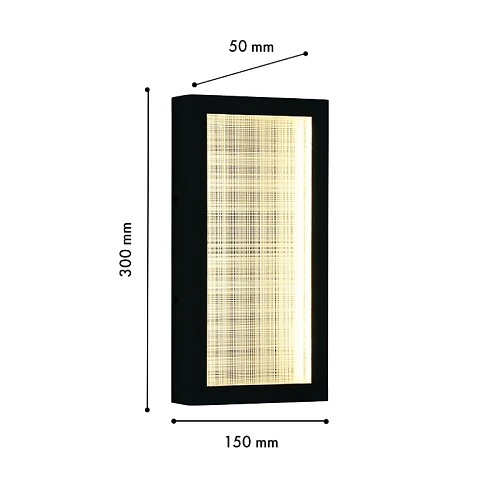 Каркас матового черного цвета, плафон украшен узором пересекающихся насечек, внутренний периметр каркаса освещен LED-лентой, P65.