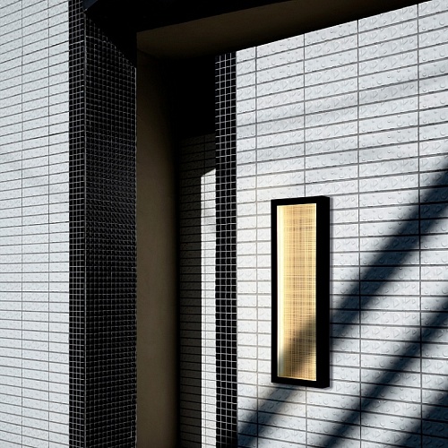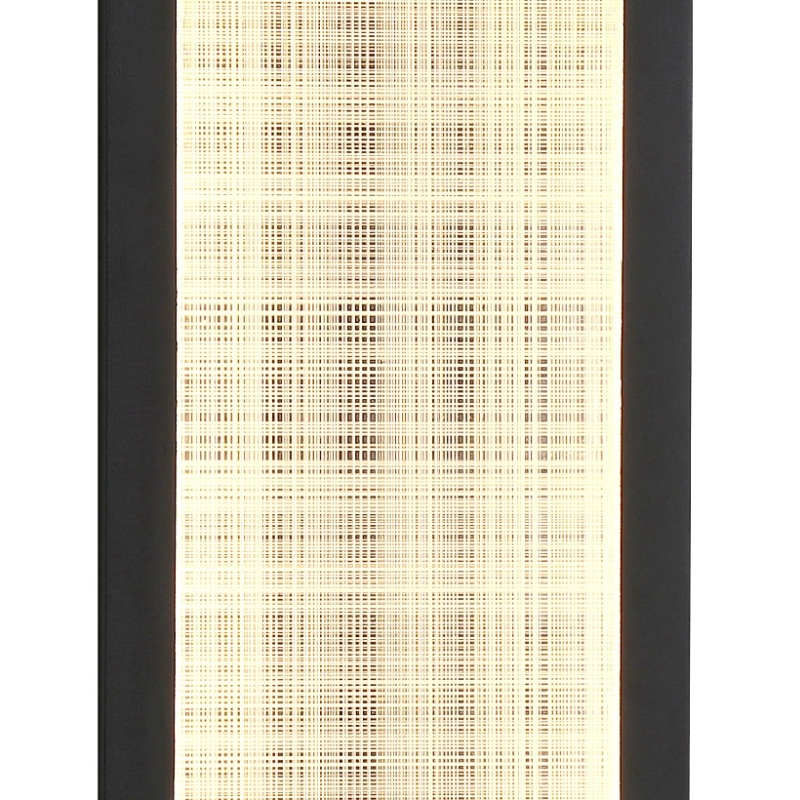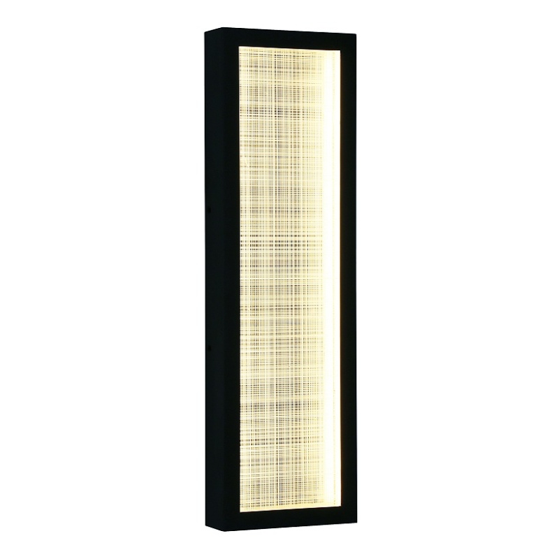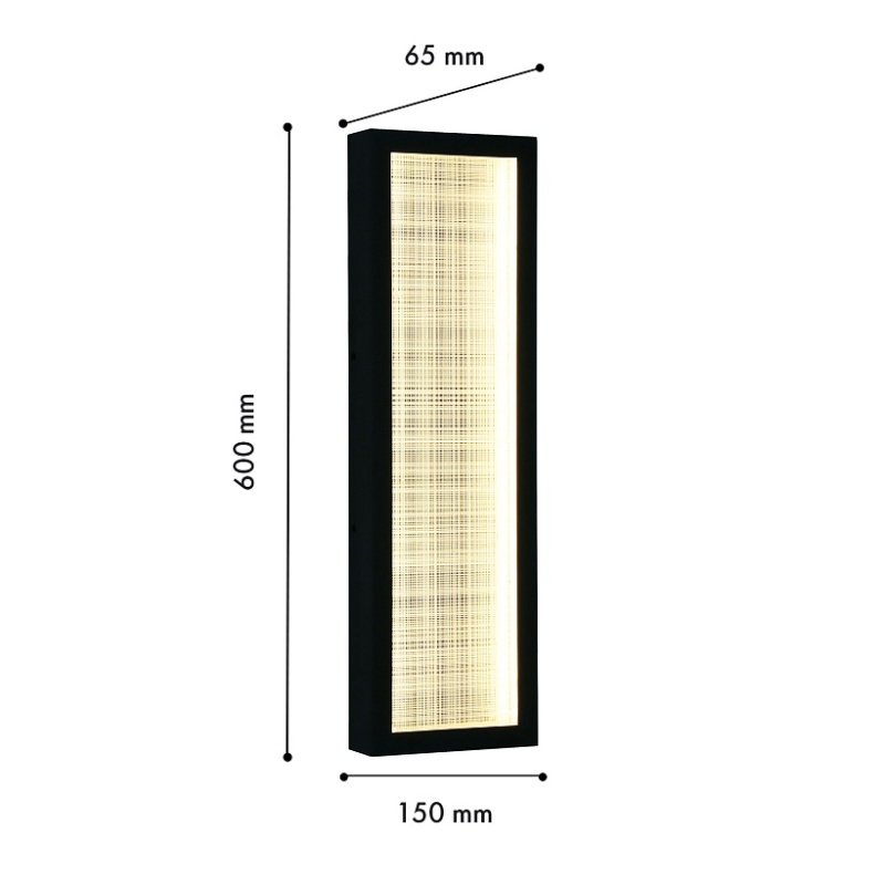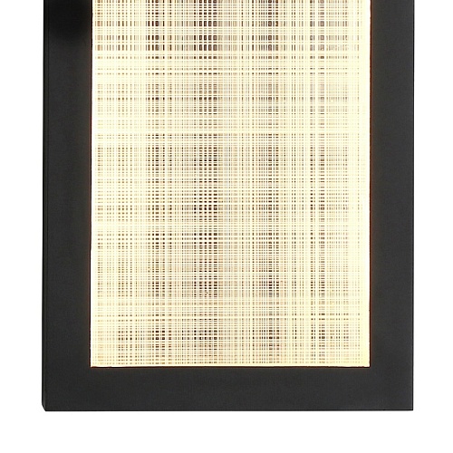Каркас матового черного цвета, плафон украшен узором пересекающихся насечек, внутренний периметр каркаса освещен LED-лентой, P65.