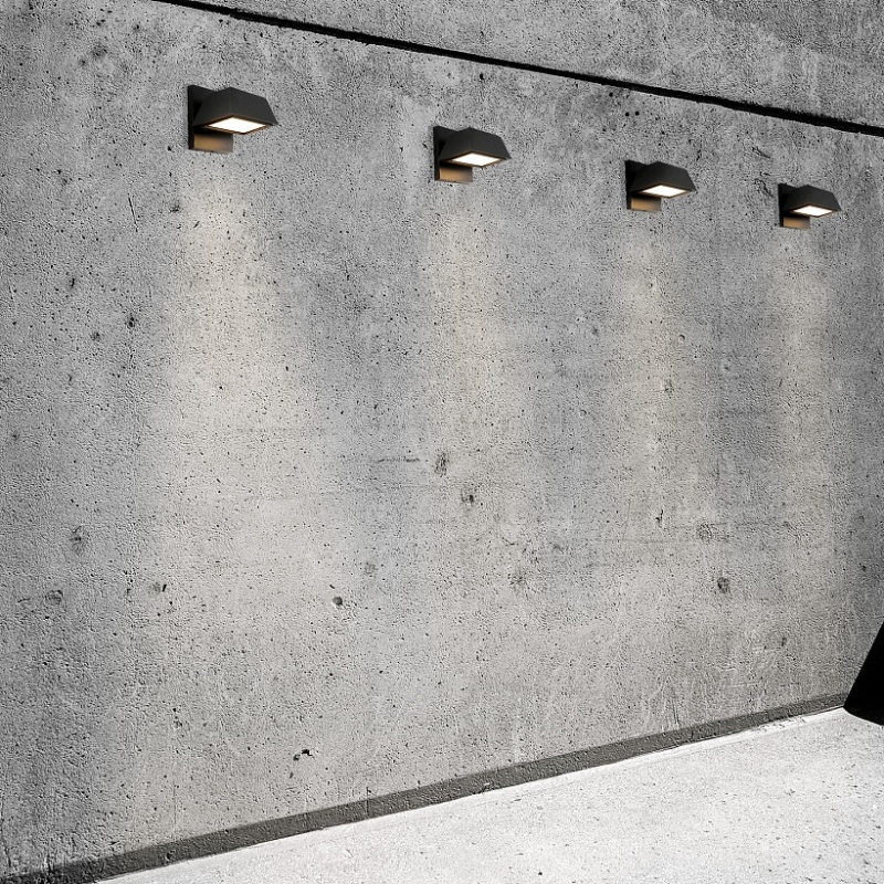 Металлический каркас черного матового цвета, плафон трапециевидной формы, рассеиватель из закаленного стекла, IP54.