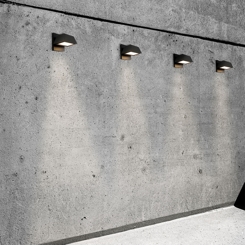 Металлический каркас цвета матовое золото, плафон трапециевидной формы, рассеиватель из закаленного стекла, IP54.