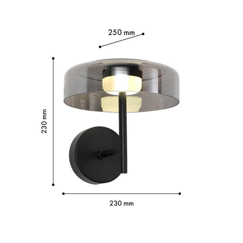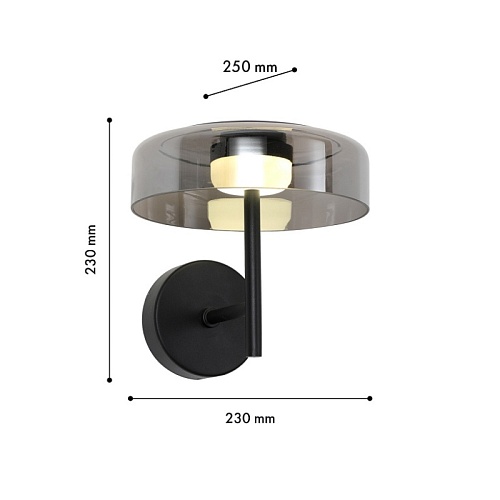 Металлический каркас черного цвета с зеркально-серым плафоном из акрила, модуль LED.