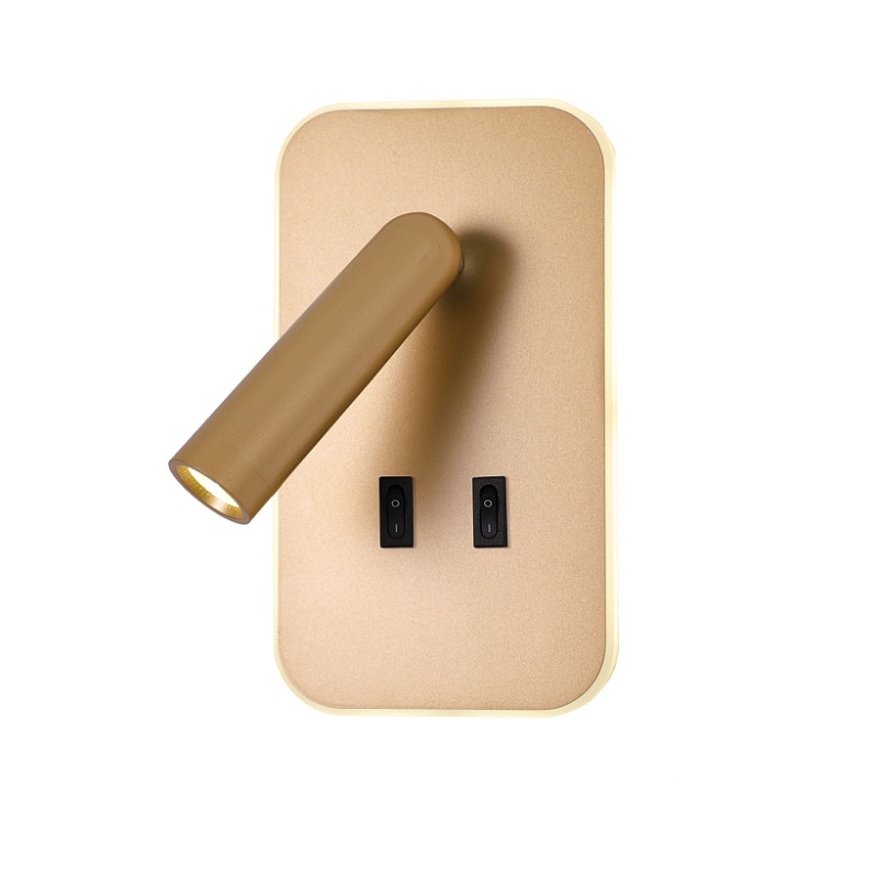 Каркас в цвете матовое золото, поворотный плафон, выключатели в виде кнопок на корпусе, LED-модули, угол поворота 90° и 350°.