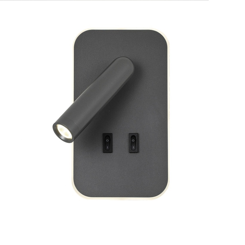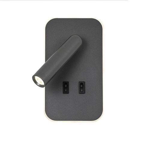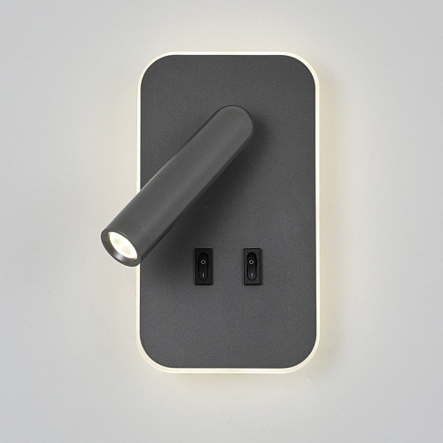 Каркас в сером цвете, поворотный плафон, выключатели в виде кнопок на корпусе, LED-модули, угол поворота 90° и 350°.