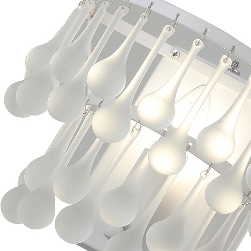Каркас из металла белого цвета, декор из белого, полуматового стекла, цоколь Е14.