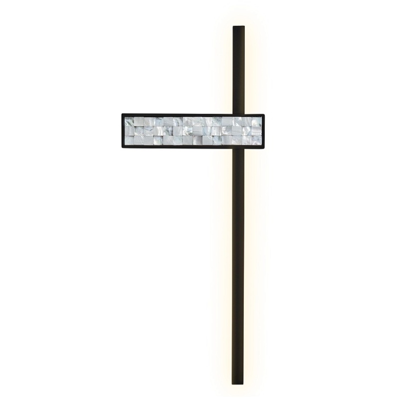 Металлический каркас черного цвета, LED-лента на внутренней стороне, декоративный элемент из перламутровых квадратиков из морских ракушек.
