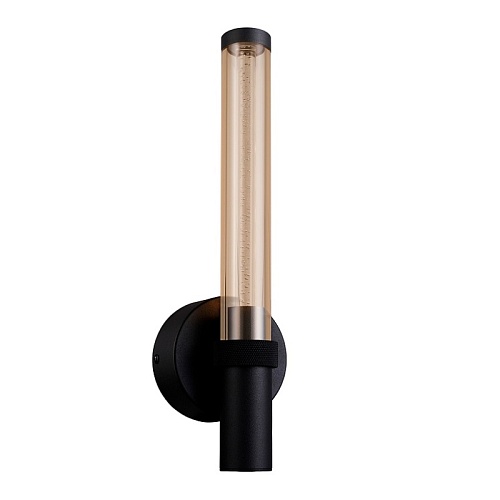Металлический каркас черного цвета, плафон из акрила коньячного цвета с пузырками внутри.