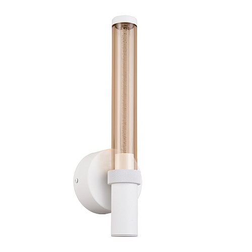 Металлический каркас белого цвета, плафон из акрила коньячного цвета с пузырками внутри.