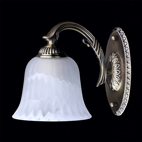 Основание: комбинация сплавов металлов, гальванизировано в цвет античной бронзы с патинированием и лакированием. Потолочная чаша, декоративная розетка: металл, прессование.Рожок: сплав алюминия, художественное литье. Плафон: алебастровое стекло, отлит в сложную форму, матирован..
