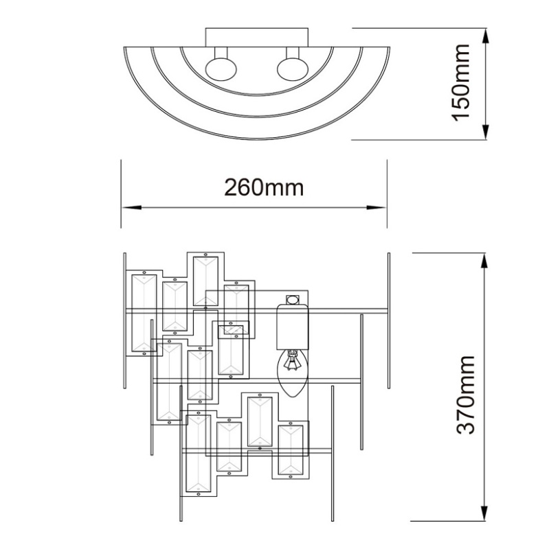 Основание бра выполнено из металла и окрашено по технологии двойного окрашивания, основной слой - серебро, декоративный слой - перламутровое золото.Декор: прозрачный хрусталь прямоугольной формы.