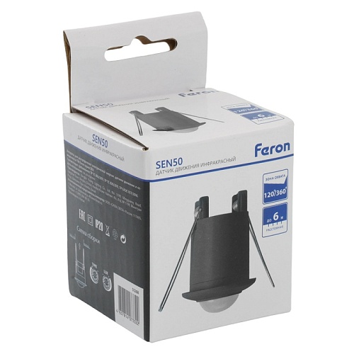 Характеристики Датчик движения и освещенности 800W 6m 120°(гориз.) 360°(верт.) чёрный, SEN50, артикул 51268