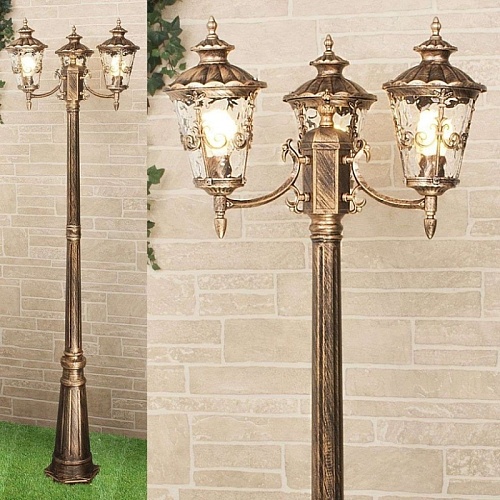 Отзывы о Уличный светильник на столбе Diadema F/3 черное золото IP44 GLYF-8046F/3 черное золото