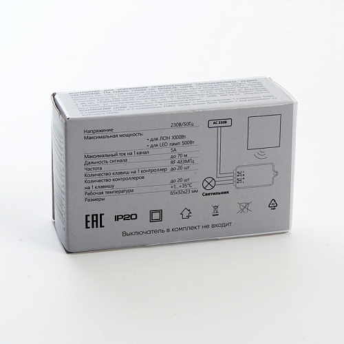 Характеристики Радиочастотный контроллер для управления с помощью беспроводного выключателя SMART AC230V, 50HZ, LD100