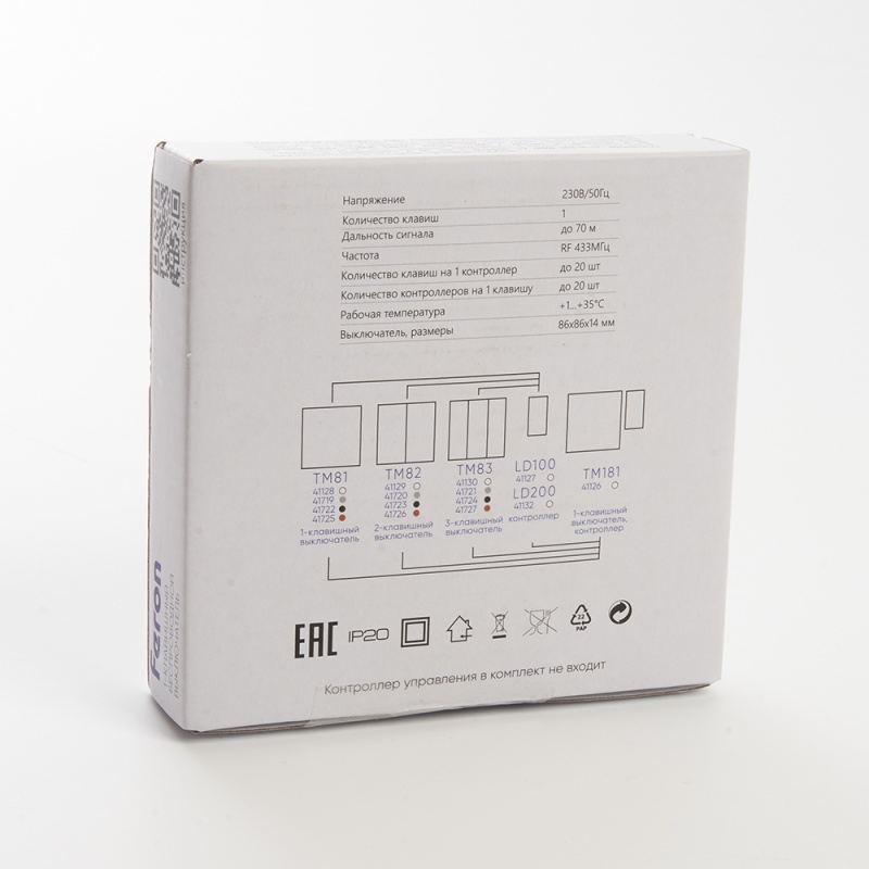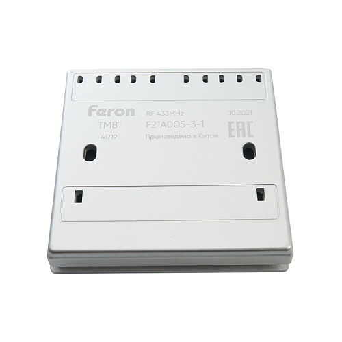 Характеристики Кнопка-выключатель беспроводной FERON TM81, 7мВт, IP20, одноклавишный, серебро