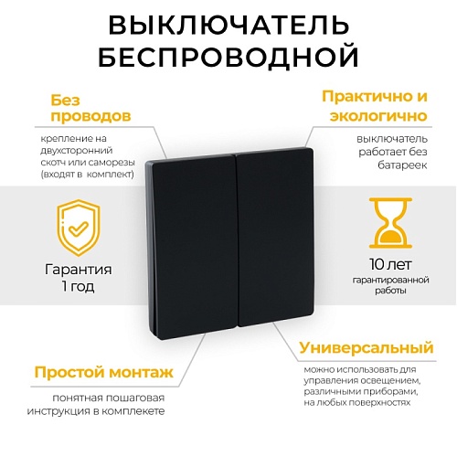 Характеристики Выключатель беспроводной FERON, TM82 SMART, 7мВт, IP20, двухклавишный, черный