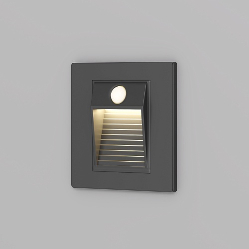 Встраиваемый в стену светильник с датчиком движения и\nвстроенным светодиодом. \nВыполняет роль подсветки ступеней и дежурного освещения\nкоридоров. \nБлагодаря встроенному датчику включается при наличии движения.\nТаймер отключения автоматически срабатывает через 30 секунд после прекращения\nфиксации движения датчиком.\nСветильники выполнены из современного термопластика.\nХарактерные особенности: прочность и полное отсутствие коррозии.\nЛегко очищается.\n\nДля установки требуется монтажная коробка DK3050-BX (приобретается отдельно). Срок гарантии 3 года.