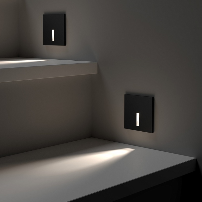 Серия встраиваемых в стену светильников со встроенным светодиодом. Выполняют роль подсветки ступеней и дежурного освещения коридоров. Применяются для внутреннего освещения. Монтажная коробка в комплектеВстраиваемый в стену светильник со светодиодом. Выполняет роль подсветки ступеней и дежурного освещения коридоров. Монтажная коробка поставляется в комплекте. За счет узкого светового окна обладает сфокусированным лучом света, падающим непосредственно на ступень.