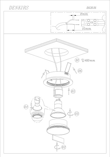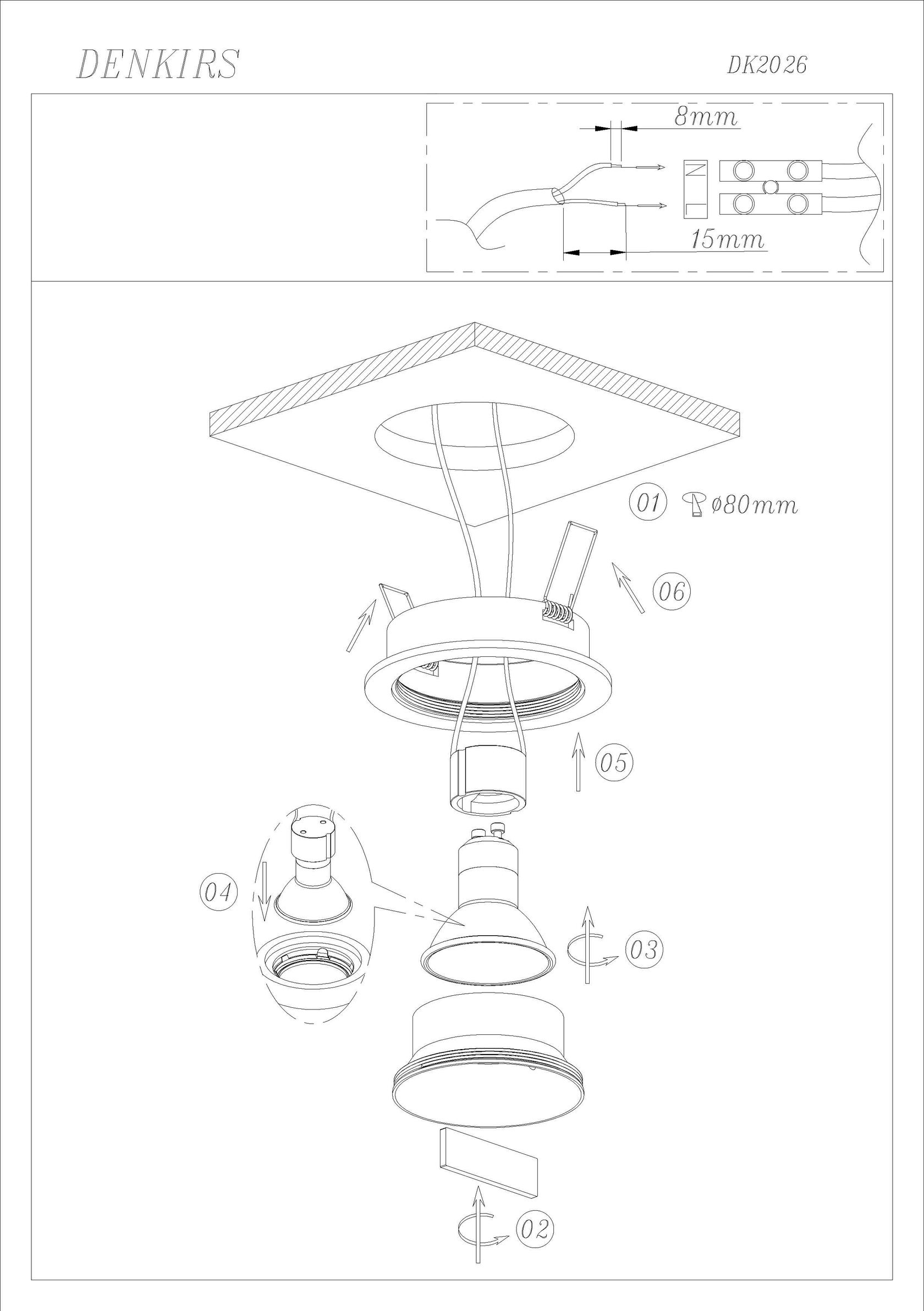 Характеристики DK2026-WH Встраиваемый светильник, IP 20, 50 Вт, GU10, белый, алюминий