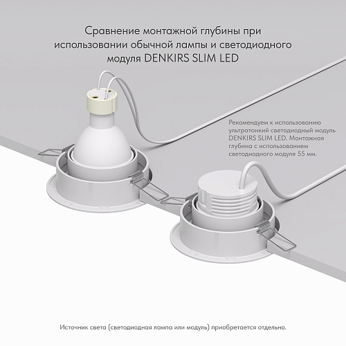 Встраиваемый светильник Denkirs DK2026 WH отличается элегантным и минималистичным дизайном. Корпус выполнен в белом цвете. Форма светильника круглая, что придает ему классический вид и легкость.\nВ модели используется светодиодный источник света мощностью 50 Вт, который обеспечивает яркое и равномерное освещение. Светильник рассчитан на напряжение 220 В и имеет степень защиты IP20 и предназначен для использования в жилых помещениях.\nСветильник Denkirs идеально подойдет для современных интерьеров, выполненных в стиле минимализм, хай-тек или скандинавский. Его можно использовать в гостиной, спальне или коридоре для создания уютной и стильной атмосферы. Срок гарантии 3 года.