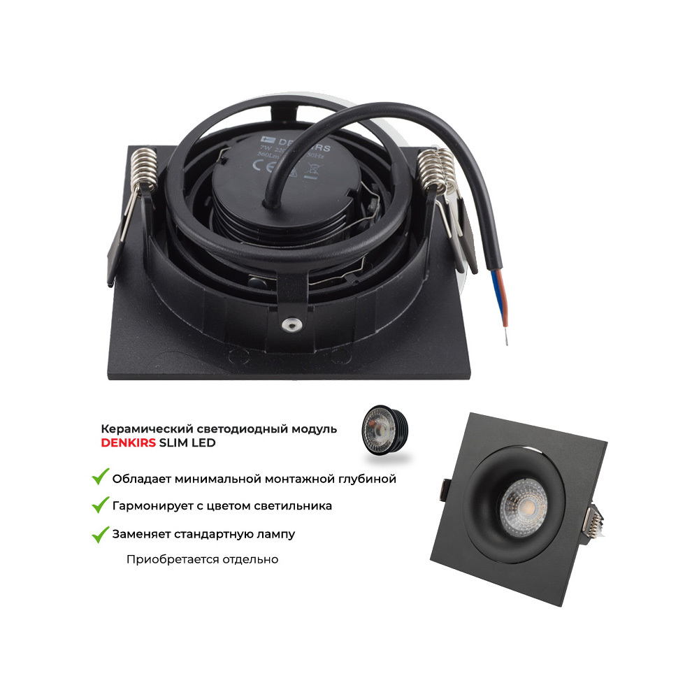 Серия встраиваемых поворотных светильников под сменную лампу. Предназначены для акцентного освещения. Имеют лаконичный дизайн и продвинутую систему регулировки направления света, обеспечивающую наклон лампы в двух плоскостях. Идеальны для прихожей, гостиной. Подходят для всех типов натяжных потолков. Простая система установки не требует высокой квалификации монтажника. Лампа в комплект не входит. Для данной серии рекомендуем ультратонкие модули SLIM LED в качестве источника света, монтажная глубина всего 40 мм.Глубина встраиваемой части с лампой GU10 (патрон входит в комплект): 80 мм. Высота лампы 54 мм. Глубина встраиваемой части с модулем DK3000/DK4000: 40мм. Срок гарантии 3 года.