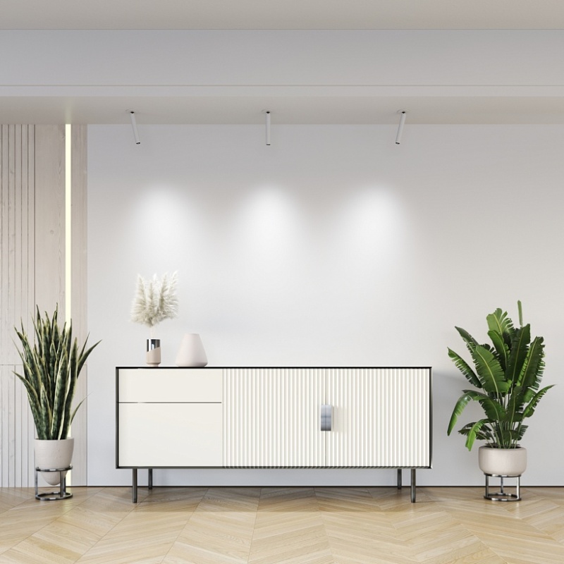 Серия встраиваемых поворотных светильников со встроенными светодиодами для акцентного освещения. Плафон имеет форму узкой длинной трубки, выполненной в дизайне биколор. Утопленный источник света обеспечивает высокий уровень зрительного комфорта и исключает слепящий эффект. Высокий индекс цветопередачи (CRI>90) для точной передачи цветовых оттенков.